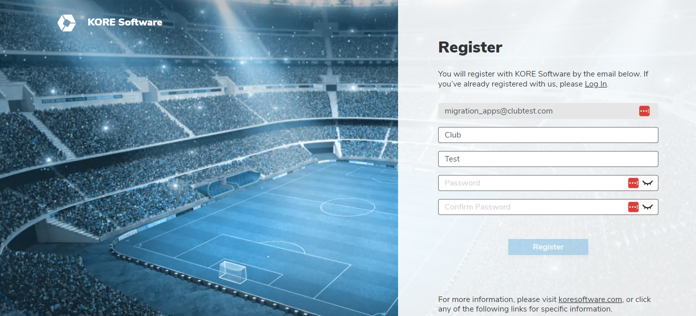 - If you do not yet have a KOREAuth account, the Register page will be presented, where you can set your password.