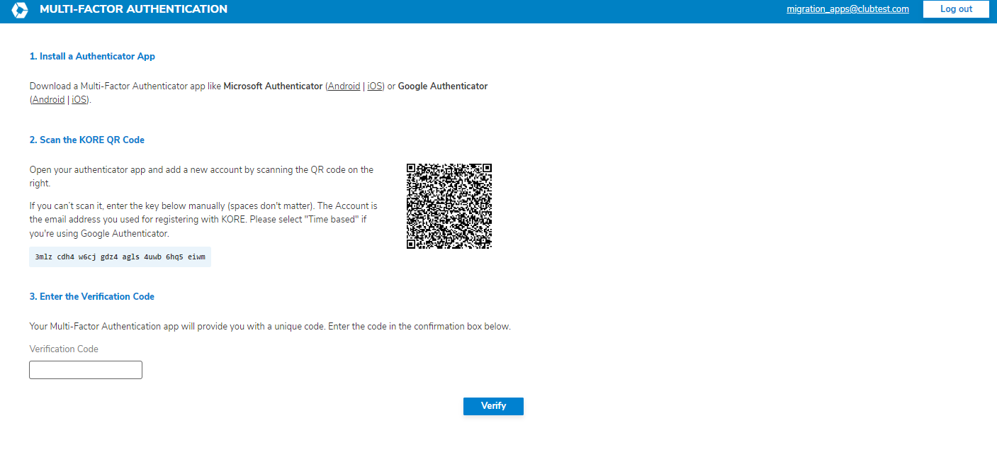 Other apps supporting the TOTP standard (such as Authy) should work, but the KORE Support team cannot provide assistance with using them.