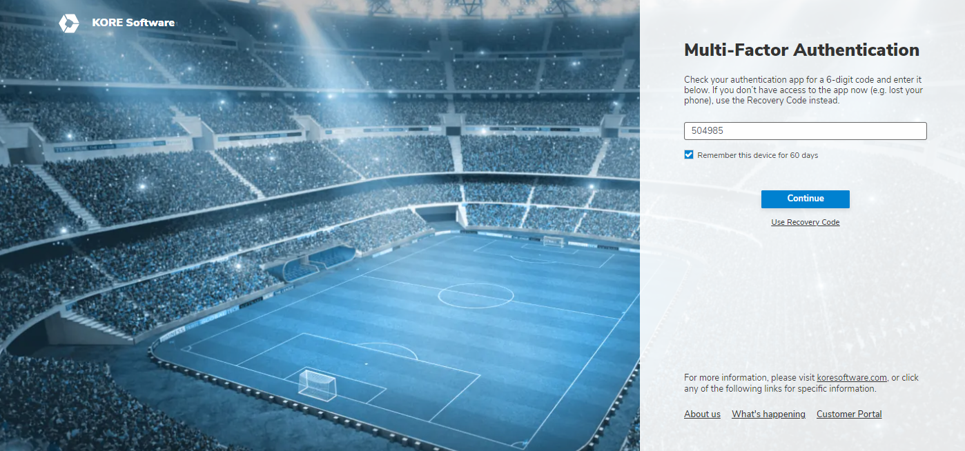 KOREAuth, and Multi-Factor Authentication [MFA], will provide access across our suite of products and can also enable a seamless integration with your organisation’s Identity Provider [IdP] such as Azure AD (paid option). It will enhance user authentication security and enable SSO functionality with other KORE products like Activate, Evaluate, and others.